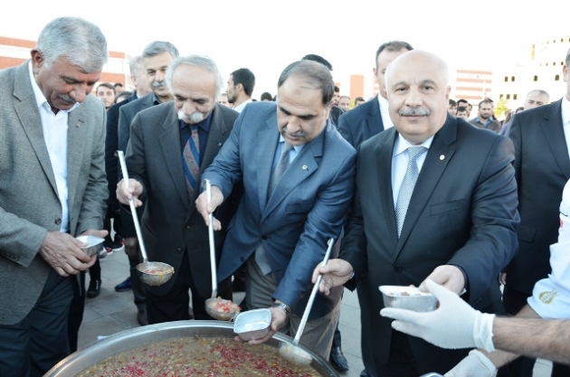 Gençlik Meydanı’nda düzenlenen Aşure Günü programına Adıyaman Üniversitesi Rektörü Prof. Dr. Mustafa Talha GÖNÜLLÜ, Adıyaman Belediye Başkanı F. Hüsrev KUTLU, Adıyaman Cumhuriyet Başsavcısı Ali Ulvi YILMAZ, Adıyaman Üniversitesi Rektör Yardımcıları Prof. Dr. Niyazi KAHVECİ, Prof. Dr. Ahmet PINARBAŞI, Prof. Dr. Seyit TEMİR, Adıyaman İl Müftü Yardımcısı Mustafa ALTUN, Ticaret ve Sanayi Odası (ATSO) Başkanı Mustafa USLU, Alevi Kanaat Önderleri, kamu kurum ve kuruluşlarının temsilcileri, siyasi parti ve sivil toplum kuruluşlarının temsilcileri, Adıyaman Üniversitesi akademik ve idari personeli ile öğrencileri katıldı.Adıyaman Üniversitesi tarafından düzenlenen programda yapılan duanın akabinde 2 binden fazla misafir ve öğrenciye aşure ikram edildi. Programda Rektörümüz Prof. Dr. GÖNÜLLÜ öğrencilere ve misafirlere kendi eliyle doldurduğu kâselerde aşure ikram etti.Etkinliğe katılan kanaat önderleri, kamu kurum ve kuruluşlarının temsilcileri ile siyasi parti ve sivil toplum kuruluşlarının temsilcileri ise, Adıyaman Üniversitesi’nin düzenlemiş olduğu etkinlikten dolayı büyük memnuniyet duyduklarını ifade ederek, en fazla ihtiyaç duyulan şeyin birlik, beraberlik ve kardeşlik olduğunu belirttiler. Adıyaman Üniversitesi Rektörü Prof. Dr. Mustafa Talha GÖNÜLLÜ’ye teşekkür ettiler.Adıyaman Üniversitesi Rektörü Prof. Dr. Mustafa Talha GÖNÜLLÜ de yaptığı konuşmasında Aşure Günü Programını artık geleneksel hale getirdiklerini dile getirerek, şöyle konuştu:“Geleneksel hale getirdiğimiz bir Aşure Günü Programında daha bir arada bulunuyoruz. Programımıza bürokratlar, müftümüz, Alevi kanaat önderleri ve toplumumuzun her kesiminden çok sayıda vatandaşımız, akademik ve idari personelimiz ile öğrencilerimiz katıldı. Aşure programımıza çok büyük teveccüh oldu. İnşallah bu birliktelik her daim devam edecektir. Katılımlarından dolayı misafirlerimiz, akademik ve idari personelimiz ile öğrencilerimize Üniversitem adına teşekkür ediyorum.”Öğrenciler ise aşurenin dini ve toplumsal olarak anlam ve öneminin büyük olduğunu belirterek, akademik bir ortamda barış ve kardeşlik içerisinde güzel arkadaşlıklar geliştirdiklerini söylediler.