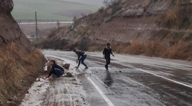 Çalışmalar kapsamında Samsat ilçesi dönüşünde yolda yağmur nedeniyle dağdan kopan taş parçalarını üyeleriyle birlikte topladıklarını belirten Yalçın, şunları ifade etti: