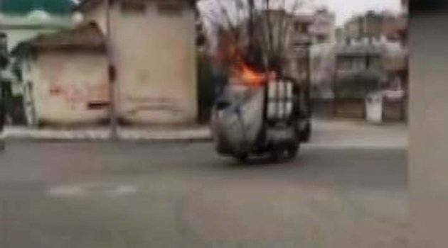 Adıyaman'da atık kağıt ve plastik toplayan bir kişinin motosikleti bilinmeyen bir nedenden dolayı alev alması sonucu yandı.Olay öğle saatlerinde Bahçelievler Mahallesinde meydana geldi. Caddelerden motosikletiyle atık kağıt ve plastik toplayan ismi öğrenilmeyen Suriyeli vatandaşın motosikletinde bulunan kağıtlar bilinmeyen bir neden dolayı alev aldı. Bir süre sokaklardan ilerleyen motosiklet sürücüsü, motosikleti durdurarak, kovalarla taşıdığı suyla alevleri söndürmeye çalıştı. Sürücünün yaptığı müdahaleler yetersiz kalınca vatandaşlarda buldukları kovalarla su taşıyarak alevlere vatandaşların yardımlarıyla yangın söndürüldü.Olay abı ise iş yeri ve bir binanın güvenlik kameralarına saniye saniye kaydedildi.