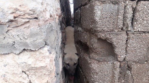 Alınan bilgiye göre, ilçeye bağlı Narince köyünde iki evin duvar arasında köpek sesi duyan çocuklar durumu muhtar ve köylülere bildirdi.