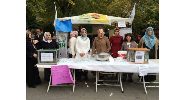 Adıyaman İl Müftülüğüne bağlı Mehmet Kırçalı Kız Kuran Kursu tadilatı nedeniyle bin kişilik aşure yapan kuran kursu hocaları Demokrasi Parkı önünde aşure satışı yaptı.