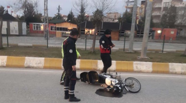 Adıyaman'ın Kahta ilçesinde direksiyon hakimiyetini kaybetmesiyle devrilen motosikletteki sürücü yaralandı.