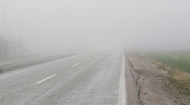 Adıyaman'ın Kahta ilçesinde Diyarbakır yolunda oluşan yoğun sis görüş mesafesini 20 metrenin altına düşürerek sürücülere zor anlar yaşattı.