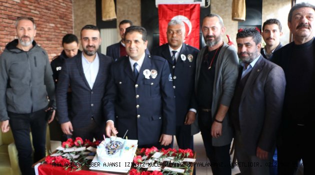 Türk polis Teşkilatının 174. kuruluş yıl dönümü ve Polis Haftası dolayısıyla kendileri için hazırlanan sürprizden habersiz söz konusu bölgeye ulaşan polis ekipleri, kavgaya karışan gençler tarafından pasta ve Türk bayrağı ile karşılandı.