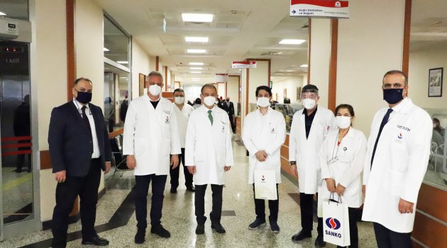 SANKO Üniversitesi Hastanesi’nde ise Rektör Prof. Dr. Dağlı, Genel Sekreter Dr. Yıldırım, Tıp Fakültesi Dekanı Prof. Dr. Akkın, Hastane Genel Müdürü Dr. Sermet Kileci ve Mesul Müdürü Dr. Suat Özerbaş, hekimleri ziyaret ederek, üzerinde Gazi Mustafa Kemal Atatürk’ün fotoğrafı ve imzasının olduğu kahve fincanları armağan ederek, 14 Mart Tıp Bayramlarını kutladı, sağlık ve başarı dileklerinde bulundu.