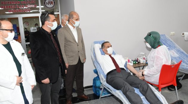 Adıyaman Valisi Mahmut Çuhadar, Vali Yardımcıları ile birlikte Türk Kızılay'ı Adıyaman Şubesi tarafından yeni Hükümet Konağı girişinde açılan stantta kan bağışında bulundu.