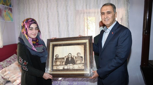 Zaman içeresinde kendi imkânlarıyla ahşap yakma sanatını öğrenerek göz dolduran çeşitli eserler ortaya koyan Semanur Aktan, Vali Çuhadar’ın dikkatini çekti.